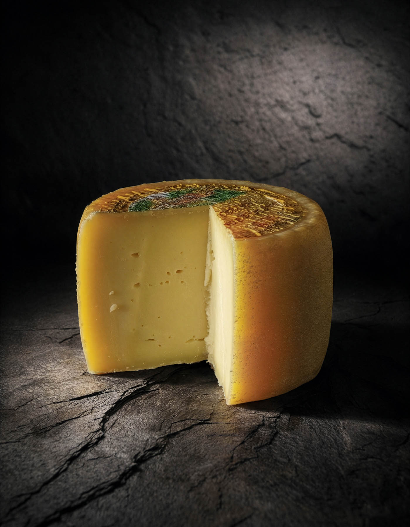 LATTE vaccino (origine ITALIA), sale, caglio, fermenti lattici selezionati. Trattato in superficie con coloranti E150d-E160b. Crosta non edibile.